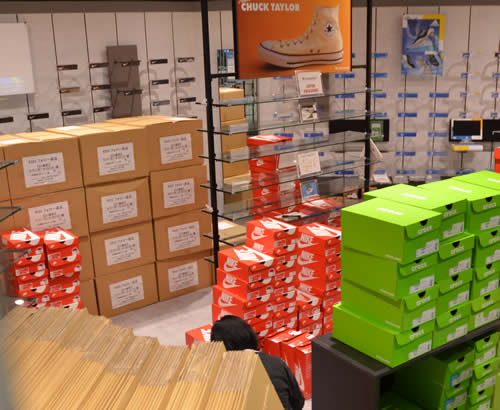 続いて第1ターミナルへ移動。案内板を見ると22店舗が営業中だ。5月から店を開けたという「ブルーブルージャパン」の店員は「服は不要不急だけど、こんなときだからこそおしゃれを楽しんでほしい」と語ったが、周りの店は閉まったままだ。靴の「ABCマート」は、棚から商品を撤去する作業のまっただ中で、今年度いっぱいは休業を決めたという。