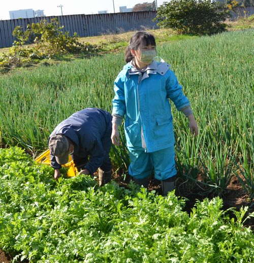(写真 食べる風邪薬=春菊の収穫を南台農地でお手伝い【13日】)