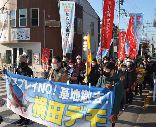12月6日、東京・福生市内で「落下物事故を許さない オスプレイいらない 基地を撤去しろ 横田デモ」が闘われ、80人が集まった。