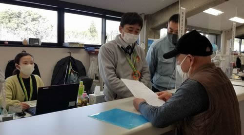 (写真 相川町長宛の申入書を提出する伊藤さん【3月10日】)