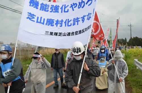 芝山デモは、相川町長―石毛博道―石井新二という反動的推進派の牙城を打ち崩す決起となった。町政を私物化する相川に対する怒りが沸き立っている。デモ後早速、反対同盟に町民から激励の電話があり、ともに闘うことを確認しあった。伊藤さんは、「同盟が市東さん農地取り上げ阻止でやるべきことをやっていけば、町民の信頼を勝ち取れる。機能強化を阻止の自信を深めた」と語った。