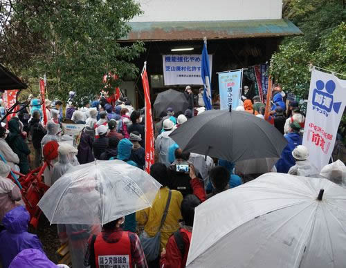 最後に市東さんが「私は一人じゃない。今日集まったみなさんがいて私もがんばれる」と語り、元反対同盟である相川芝山町長の裏切りを弾劾し、「今日のデモを出発点に、闘いを明日へつなげましょう」と檄を飛ばした。