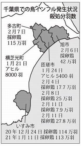 いすみ市、横芝光町、匝瑳市、さらに旭市、多古町と広がっていって、千葉県全体で470万羽を殺処分した。茨城県の鶏卵大手のイセフーズにも広がっている。