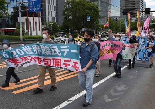 6月20日、「世界難民デー東京入管包囲デモ」に約100人が集まった(写真)。全学連行動隊も闘った。