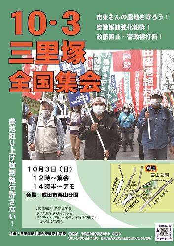 全国の闘う仲間の皆さん。私たちは来る10月3日、市東さんの農地を守る決意も新たに全国総決起集会を開催します。