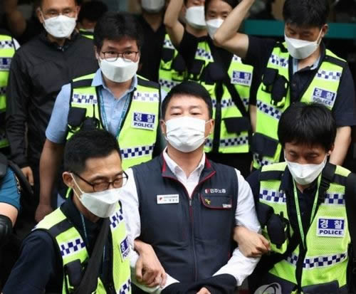この状況下で9月2日に韓国警察当局は動労千葉と連帯関係を結んでいる韓国の労働組合・民主労総のヤンギョンス委員長を不当に逮捕しました。警察はヤン委員長が5月から7月にかけてソウル都心で何度か集会やデモを行ったとして、「集会及び示威に関する法律違反」「感染症予防法違反」などをでっち上げ、『京郷新聞』という新聞社に家宅捜索に入り不当逮捕したのです。