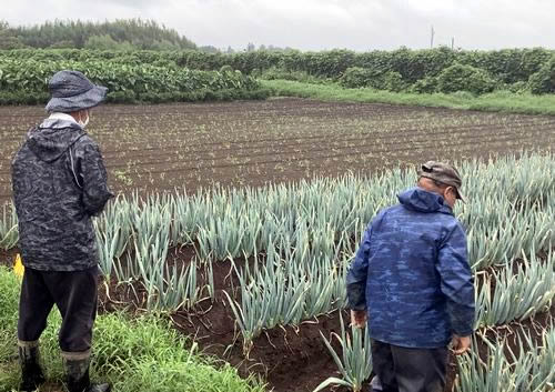 (写真 市東さん南台の畑に植わるネギ【9月5日】)