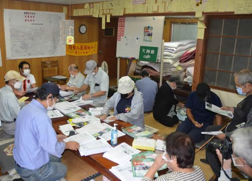 夕方、再び離れに集まった仲間は一日の集約を行った。住民と呼吸しつつ10・3全国集会の成功に向け全力を尽くすことを誓い合った。