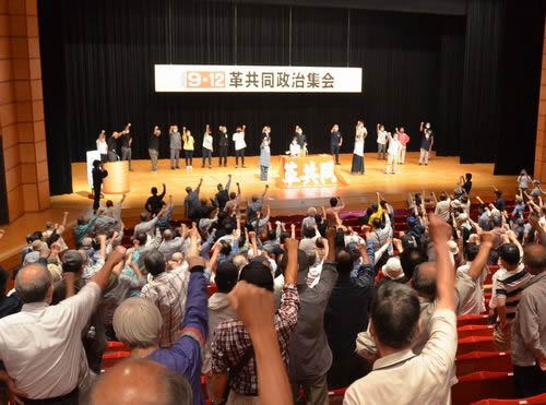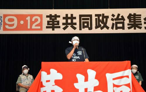 9月12日、江戸川区総合文化センターで革共同政治集会が開かれ、510人が集まった。反対同盟から萩原富夫さん、伊藤信晴さん、宮本麻子さんが参加。萩原さんが来賓あいさつに立ち、10・3三里塚全国集会の結集を呼びかけた。(別掲)