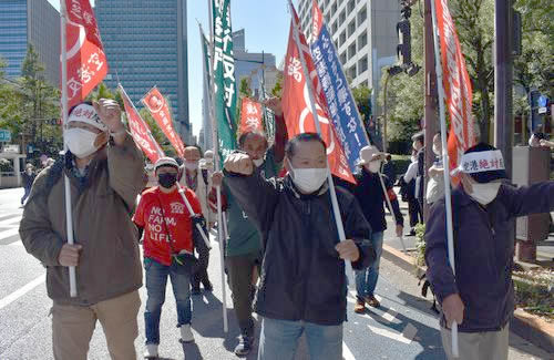 (写真 都立墨東病院前をデモ【23日】)