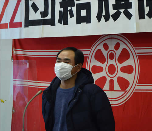 ピンスポット 動労千葉旗開きフレッシュに 合理化打ち破ろう 萩原さんが連帯あいさつ