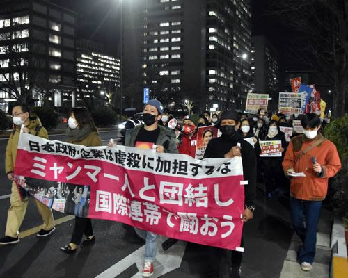 ピンスポット ミャンマー国軍の虐殺許すな 200人が銀座をデモ 日本政府はODA停止を