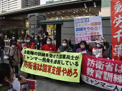 3月1日、ミャンマー国軍の人民虐殺に加担する防衛省への抗議申し入れ行動が行われた。(上)