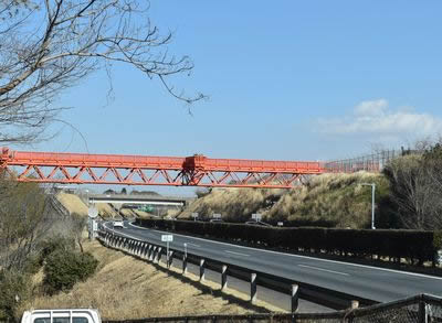 暫定滑走路として供用開始されたB滑走路はこれまでも2度にわたる北延伸を行い、進入灯は東関道をまたぎ北側に続いている。交通量の多い東関道の真上を横切って飛行機は危険な離着陸を行ってきたわけだが、このたびの機能強化で東関道を地下トンネル化して(430㍍)その上に延長滑走路を築こうというのだ。その準備工事として、切り回し道路(仮設道路)をまず造るのだという。現場は激しく起伏に富んだ地形だ。