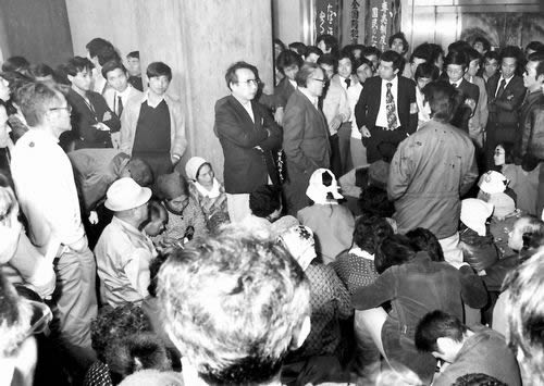 ここで反対同盟は、戸村一作委員長、北原鉱治事務局長を先頭に総決起し、中央委員会が開かれる東京の会場におしかけ座り込んだ。動労本部カクマル城石らに対し、戸村委員長は「動労千葉を査問委員会にかけるなど本末転倒だ」と城石の胸を激しく突き飛ばし、婦人行動隊もみな口々に弾劾した。