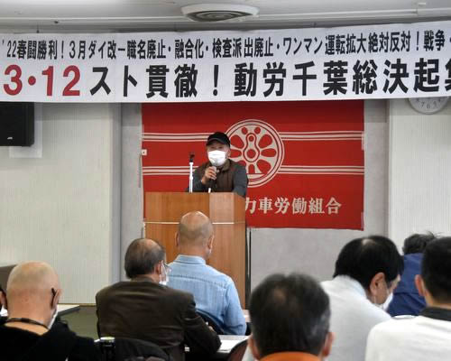 ピンスポット 動労千葉が「戦時下の春闘スト」 意気高く決起集会 伊藤さんが連帯あいさつ