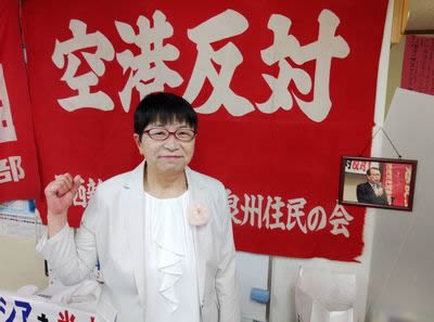 5月の泉佐野市議選に向けて関西新空港絶対反対泉州住民の会(泉州住民の会)代表の中川いくこさんが連日奮闘しています。