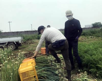 (写真 市東さんの畑でネギ苗の収穫【20日】)