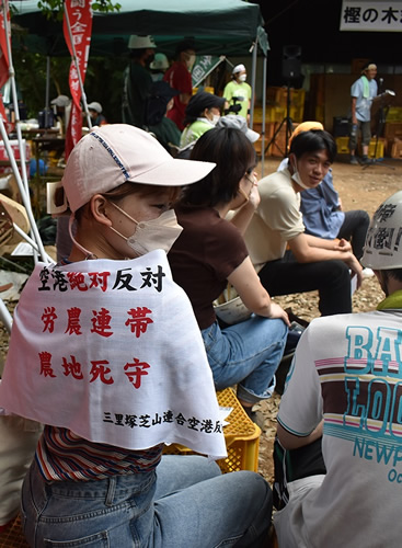 デモ出発地点の南台の畑に立つと、豊かな土のにおいと感触、すぐ近くを通る飛行機の姿と爆音、学生たちのヘル姿で、あぁ久しぶりに三里塚現地に来たんだなと実感。そして、この畑に来ることができたこと自体に感動。今も農地取り上げの強制執行をさせていないのは、とてもすごいことだと思うのです。市東さんの農民として生きる信念と誇り、そして全国の仲間との団結と「強制執行実力阻止」の臨戦態勢が、国家の暴力をはね返しているのです。三里塚闘争は勝利者として存在しています。