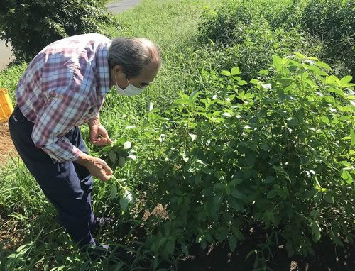 (写真 夏野菜の王様=モロヘイヤの収穫【19日】)
