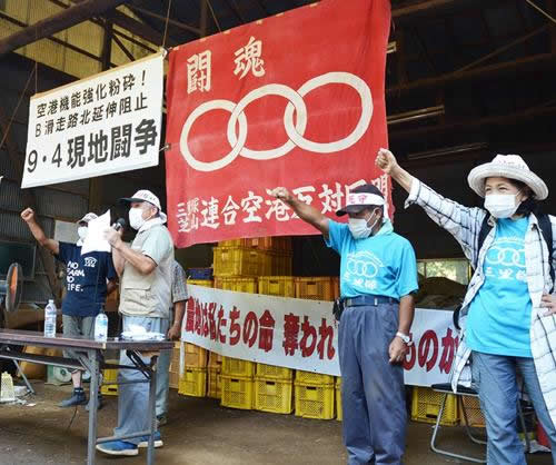 米軍と自衛隊は対中国を想定した大規模軍事演習をアジア太平洋地域で繰り広げ、かつてない戦争挑発を行っている。岸田政権は、安倍国葬を戦争体制づくりと一体で強行し、改憲、大軍拡に突進しようとしている。米日による中国侵略戦争の超切迫と対決して9月4日、三里塚芝山連合空港反対同盟が主催する「空港機能強化粉砕、B滑走路北延伸阻止」を掲げた現地闘争が行われた。2日の新やぐら控訴審での仮執行宣言付きの反動判決への怒りをたぎらせ、120人が参加した。この闘いの高揚をさらに発展させ、国葬粉砕・岸田政権打倒の9・23全国集会に攻め上ろう。「成田軍事空港粉砕! 農地死守・実力闘争」の原則を56年貫いて闘う反対同盟が呼びかける10・9全国集会に総決起しよう!