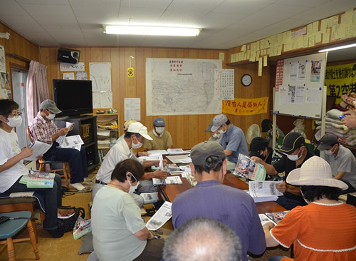 反対同盟と支援連絡会議の仲間は9月18日、110回目の空港周辺情宣一斉行動に立ち上がった。午前8時半に成田市天神峰の市東孝雄さん宅離れで朝の打ち合わせを行った。(写真)