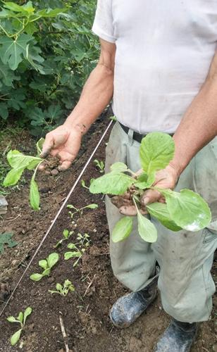 私は80歳の春から荒野状態の田を菜園にしようと鍬(くわ)を持って耕しはじめました。広さは500平方㍍ほどで一週間に一畝(うね)ぐらいを耕してます。(写真)