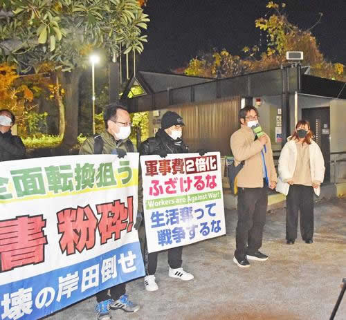岸田政権は安保3文書を改定し、他国領域への先制ミサイル攻撃も認める、戦後史を画する大転換を国会での論議もなしに閣議決定で決めてしまおうとしている。断じて許すことはできない。