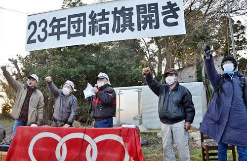 市東さん農地取り上げ阻止の昨年の闘争に勝利したことを確認したいと思います。そしてこの23年も市東さん闘争、「農地は命」という市東さんの気持ちと共に闘い続けたいと思います。私たち動労千葉は、昨日旗開きを行いました。私は冒頭のあいさつでも、三里塚決戦を闘おうということを述べました。