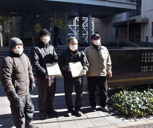 反対同盟はその後、休む間もなく直ちに車を飛ばして千葉地裁へと直行。民事第4部の書記官室を訪れ、「市東さんの農地と建物を取り上げる強制執行に反対する署名」1679筆を提出した。緊急の呼びかけに応えて全国の人々が強い願いを込めて取り組んだ署名だ。千葉地裁がNAAの手先となって強制執行を行うことなど断じて許さぬという気迫を込めて、対応に出た職員に手渡した。