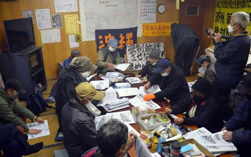 成田市天神峰の市東孝雄さん宅離れに集まった仲間は朝の打ち合わせを行った。東峰の萩原富夫さんが年末決戦を闘い市東さんの農地を守りぬき旗開きを開催した勝利を確認し、2・5現地闘争への大結集を勝ちとろうと呼びかけた。白枡の伊藤信晴さんは緊急署名を集めきろうと訴えた。
