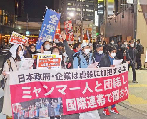 ピンスポット ミャンマー人民先頭に銀座デモ 岸田政権に怒りの叫び