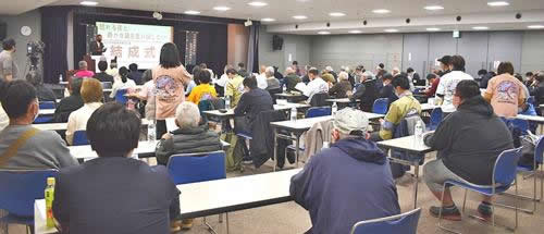 2月26日、成田市内で、「夜間・早朝の飛行差し止め」と「損害賠償」を求める訴訟団の結成式が行われた。(写真)