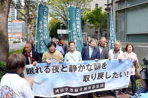 航空機騒音の被害を受けている成田空港周辺住民138人が3月31日、国とNAAに対し、夜間早朝の飛行差し止めを求め千葉地裁に提訴した。(写真)