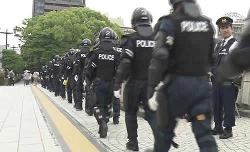 厳戒態勢打ち破り帝国主義の核戦争会議に実力デモを