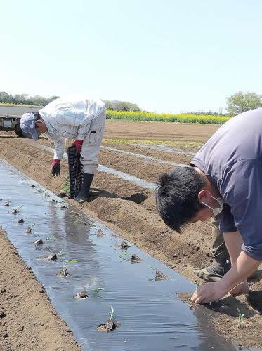 (写真 萩原さんの畑でトウモロコシの苗を移植【4月10日】)