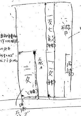 その図面の元になったとされるのが、地主藤﨑が市東さんから聞き取って畑の場所を確認したという手書きのメモ。だがこの藤﨑メモはひどくずさんで、これ自体がコピーで原本が存在せず、どういう経緯で書かれて公団の手に入ったかも不明。証拠価値ゼロだ。