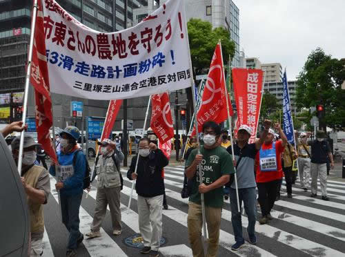 裁判に先立ち千葉市中央公園で反対同盟主催の集会が開かれ、反対同盟の萩原富夫さんが2・15天神峰農地強奪強制執行と闘った6人へのでっち上げ不当逮捕を徹底弾劾した。集会後の千葉地裁に向けたデモでは、婦人行動隊の宮本麻子さんが不当弾圧弾劾・南台農地死守の声を千葉市内繁華街に響かせた。