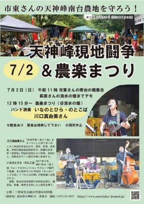 7月2日天神峰・東峰の地で、土に触れ、歌い語らい、「第2ラウンド」の闘いに向けた英気を養おう。