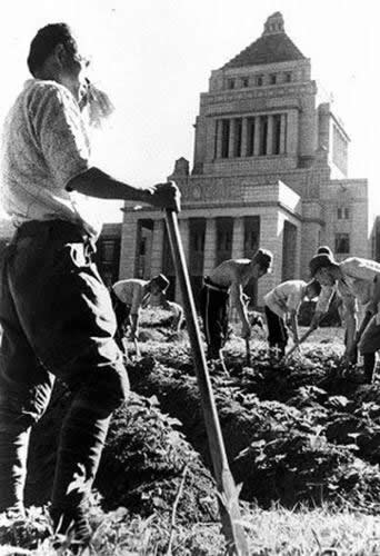 (写真 戦争中は国会議事堂前も耕作地に【1943年】)