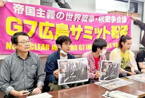 G7広島サミット粉砕デモに参加し、不当逮捕されていた全学連の太田蒼真副委員長を6月8日に、学生Aさんを翌9日に不起訴で奪還した。9日には、広島県庁で警察・機動隊の弾圧の不当性を全面的に暴露する記者会見が開かれた(写真)。