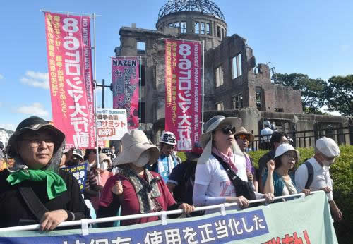 核戦争阻止、岸田倒せ 原爆ドーム前で集会実力開催 8・6広島