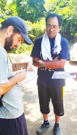 国家権力と57年にわたって不屈に闘う反対同盟に海外からの注目が集まっている。フランスの環境ジャーナリストが7月26日、現地を訪れて萩原富夫さんを取材(写真下)。31日には、米3大放送局の一つCBSニュースが市東孝雄さんを取材した(写真上)。