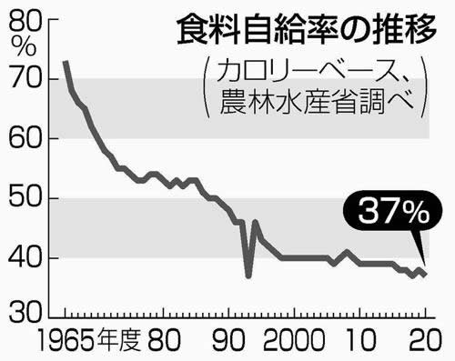 小数点以下まで含めたカロリーベースの食料自給率は37・64%となり、0・37ポイント減った。
