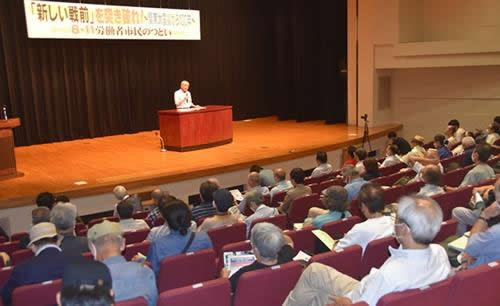 関東大震災から100年の8月11日、「新しい戦前」を突き破れ!を掲げた労働者市民の集い(写真)に参加しました。泥沼化するウクライナ戦争のただ中だからこそ、反戦の実践がシンプルに問われる集会です。毎年開会のあいさつをしてきた葉山岳夫弁護士の遺志を継いで、今年は高山俊吉弁護士が口火を切りました。「戦争反対は推進者でも語る。戦争を絶対に許さない力をどう作っていくか、今日をそのスタートにしよう」