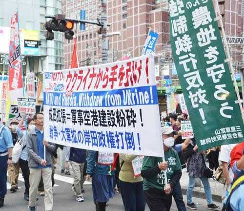 この時代でこそ、三里塚闘争の真価が発揮されていきます。反戦を闘う仲間が集う人民の砦(とりで)であるにとどまらず、軍事空港建設そのものである成田空港の拡張を粉砕する反戦闘争としても、ますます重要な意義を持つものとなってきました。浜田防衛相(当時)が沖縄の下地島空港とともに成田を名指しして軍事利用の狙いを公然と語るような中で、空港関係の労働者に「戦争協力を拒否しよう」と呼びかけていきたいなとホントに思います。成田には空港関係の労働者とその家族が万単位で住んでいるわけですから、10・8集会とデモはすっごいアピールになったと思います。デモは沿道の注目を大いに集めたようですね。私は集会場の後片付けでデモには出られませんでしたが、思いを込めて作った横断幕が私の代わりに訴えてくれたものと思います。