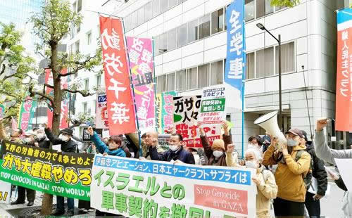 ピンスポット イスラエルとの武器契約撤回せよ 虐殺加担企業に抗議 怒りのアピールたたきつける