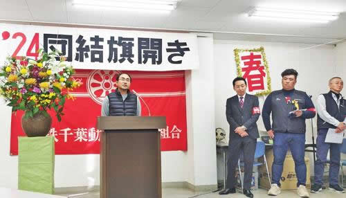 動労千葉の団結旗開きが1月6日、DC会館で開かれた。関道利委員長が年頭あいさつに立ち、「この世界戦争情勢のもとで労組として原則的に闘って組織を拡大し、2024年決戦に勝利しよう」と訴えた。