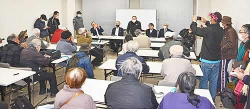 次回2月19日には、現闘の同志たち3人の証言が予定されている。さらに成田空港の騒音被害に損害賠償を求める住民の民事訴訟が5月1日から始まることが確認された。最後に萩原富夫さんが3・31芝山現地闘争への参加を呼びかけ、戦争を阻止する闘いに三里塚が立つ決意を述べた。