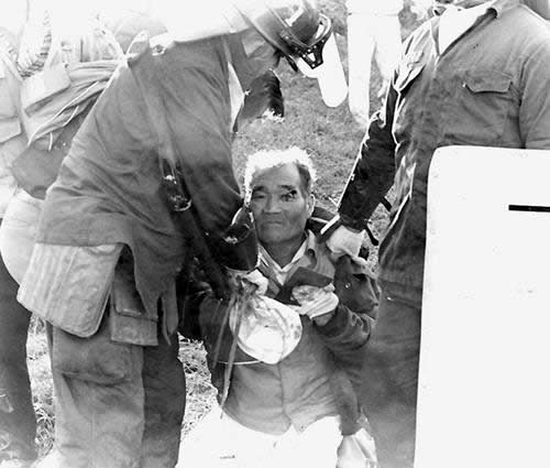 84年の成田用水着工に反対して反対同盟が阻止線を張り、機動隊の暴行を受けながら5人の同盟員が逮捕された。額から血を流して逮捕される東市さんの報道写真と、その後の東市さんの「いかなる弾圧も怒りの炎に油を注ぐだけ」との不屈のコメントは、千葉さんに強い感銘を与えた。
